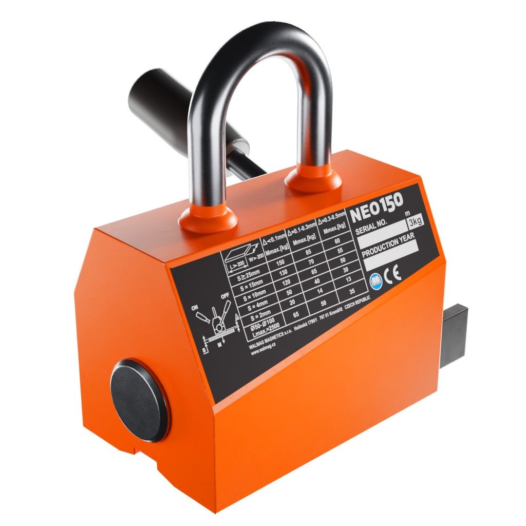 The Neo magnet is widely used for handling ferromagnetic materials in the metal industry – in workshops, on building sites, in warehouses for semi-finished steel products, when handling steel workpieces, tools, sheets, metal profiled sections, tubes, and bars. The Neo permanent lifting magnet is intended for use in production plants where an emphasis is placed on enhanced safety. Thanks to strong neodymium magnets, it has a higher lifting capacity than other magnets with similar dimensions.