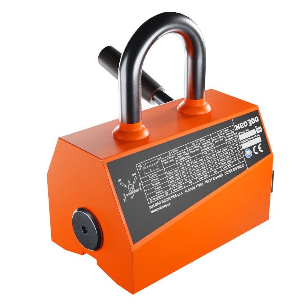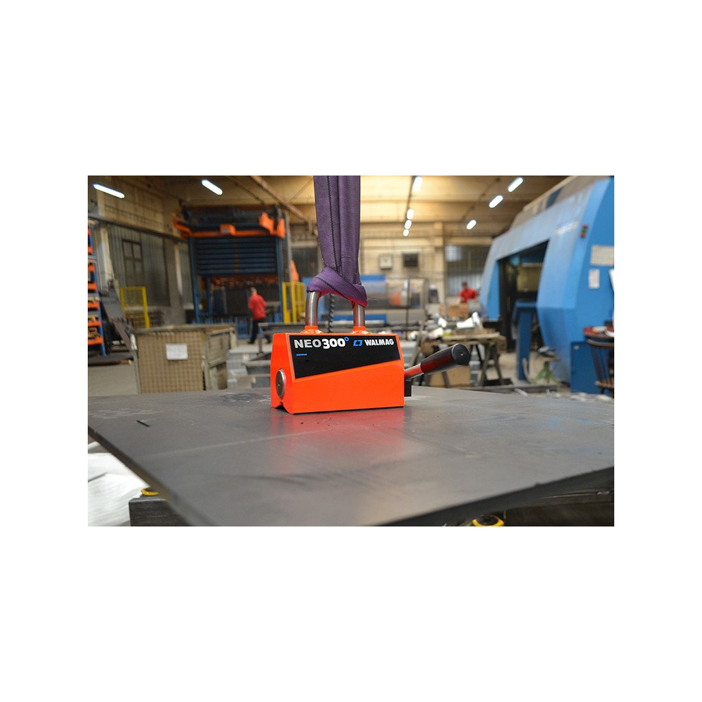 The Neo magnet is widely used for handling ferromagnetic materials in the metal industry – in workshops, on building sites, in warehouses for semi-finished steel products, when handling steel workpieces, tools, sheets, metal profiled sections, tubes, and bars. The Neo permanent lifting magnet is intended for use in production plants where an emphasis is placed on enhanced safety. Thanks to strong neodymium magnets, it has a higher lifting capacity than other magnets with similar dimensions.
