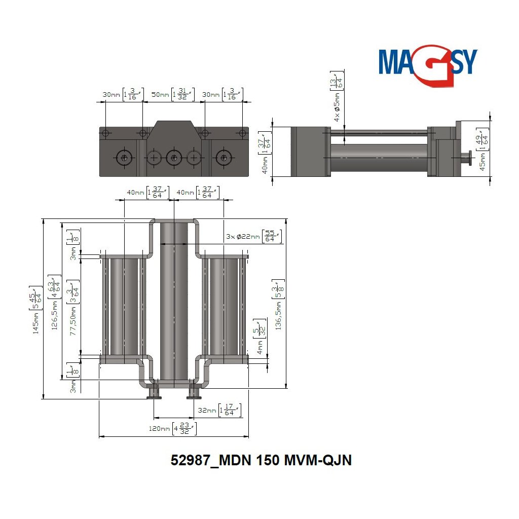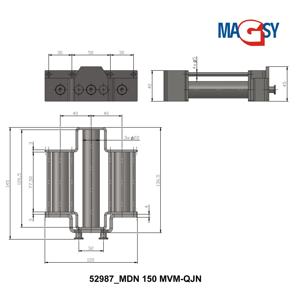 If you are placing the hopper magnet in its own structure (box, hopper, chute...), please note that such structures must not be made of metallic (magnetic) material. There is a risk of injury and a significant reduction in magnetic force. All structures in which the magnet is placed in the hopper must be made of non-magnetic materials. The minimum distance of metal (magnetic) structures from the magnet to the hopper is 200 mm.