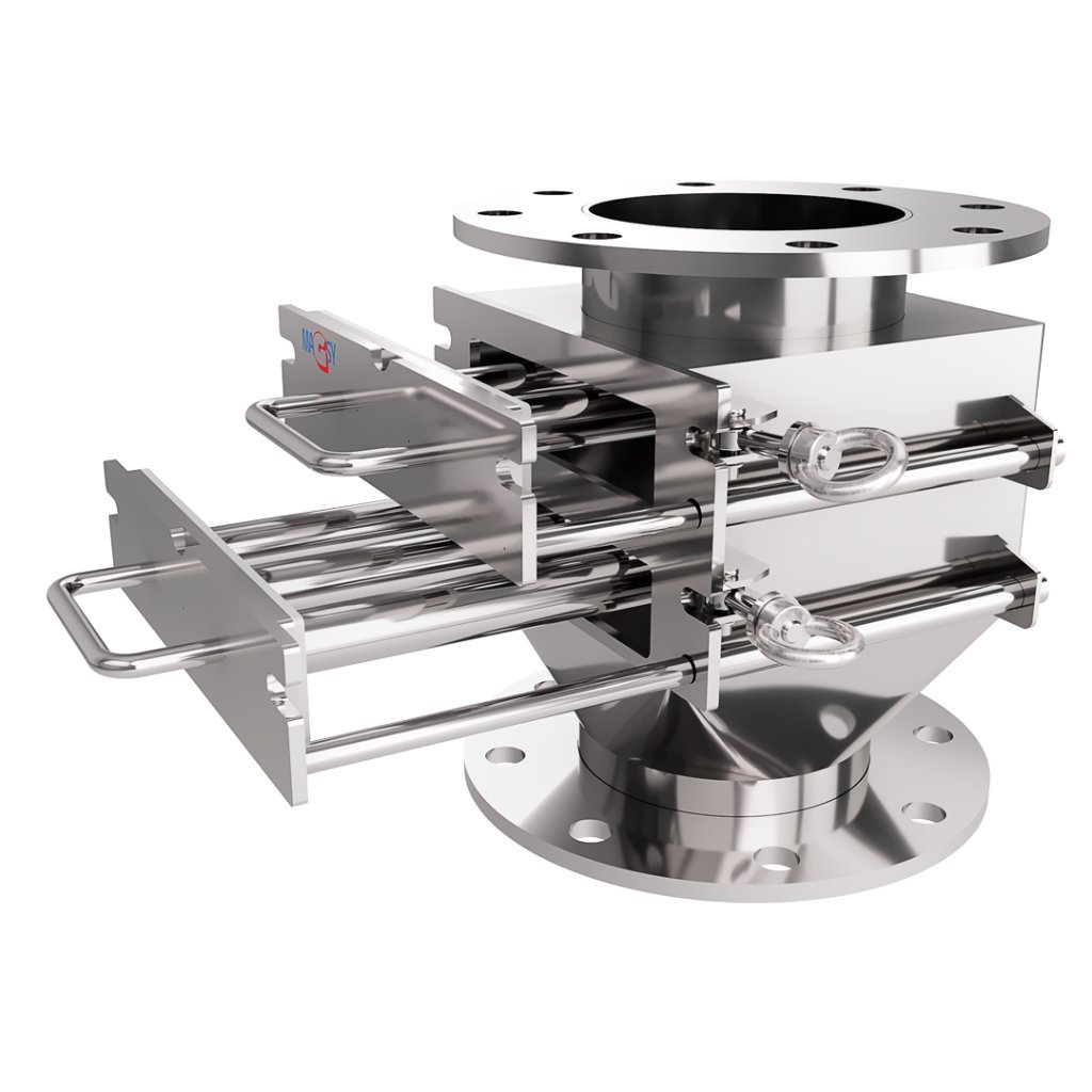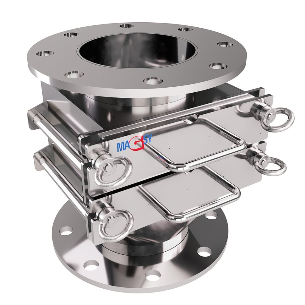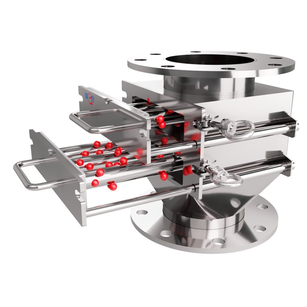 The magnetic grates in the magnetic separator are designed to capture as many magnetic metal impurities as possible. However, everything depends on the amount of these magnetic impurities present in your material. It is not possible to bindingly guarantee the capture of all ferromagnetic impurities. It is always necessary to consider the specific technology and capacities. If necessary, other types of magnetic separation must be installed upstream or added. Please do not rely solely on this one magnetic separator. If you are not sure, do not use this type of magnetic separator and contact our magnetic separation experts at any time.