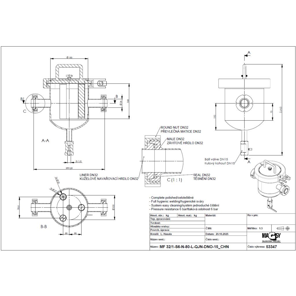 Material: Stainless steel DIN 1.4301, EN 10088, ČSN 17240, AISI 304, AKV 7 – chromium-nickel austenitic unstabilized steel (X5CrNi 18-10)