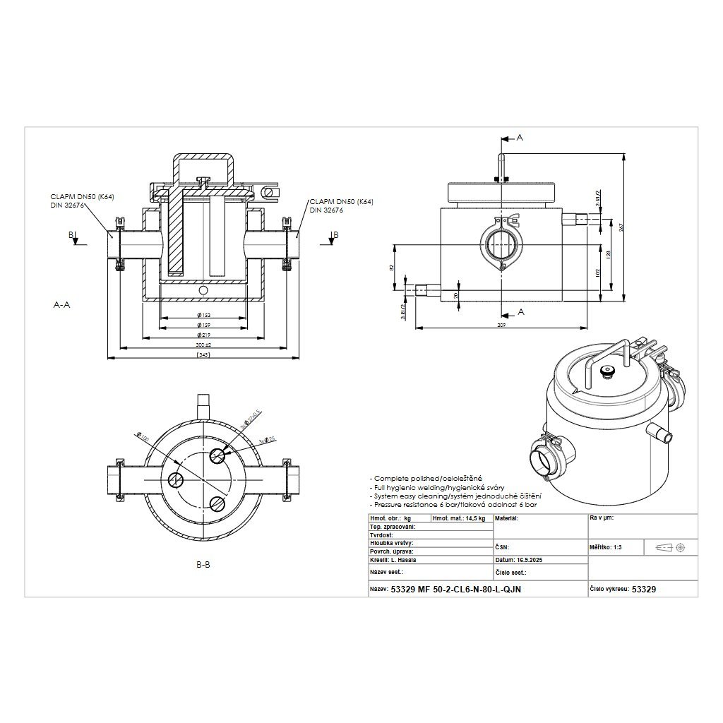 The maximum pressure that may occur in the pipeline is 6 bar. WARNING! This is the maximum pressure, meaning that even, for example, during pipeline cleaning, the pressure in the magnetic separator must not exceed 6 bar.