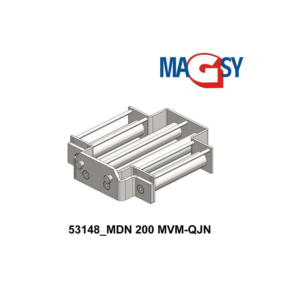 If you are placing the hopper magnet in its own structure (box, hopper, chute...), please note that such structures must not be made of metallic (magnetic) material. There is a risk of injury and a significant reduction in magnetic force. All structures in which the magnet is placed in the hopper must be made of non-magnetic materials. The minimum distance of metal (magnetic) structures from the magnet to the hopper is 200 mm.