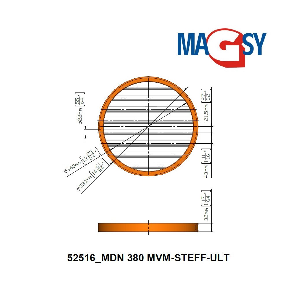 Magnet for injection moulding machine hopper MDN 380 MVM-STEFF-ULT, 6.810 Gs, 31 N