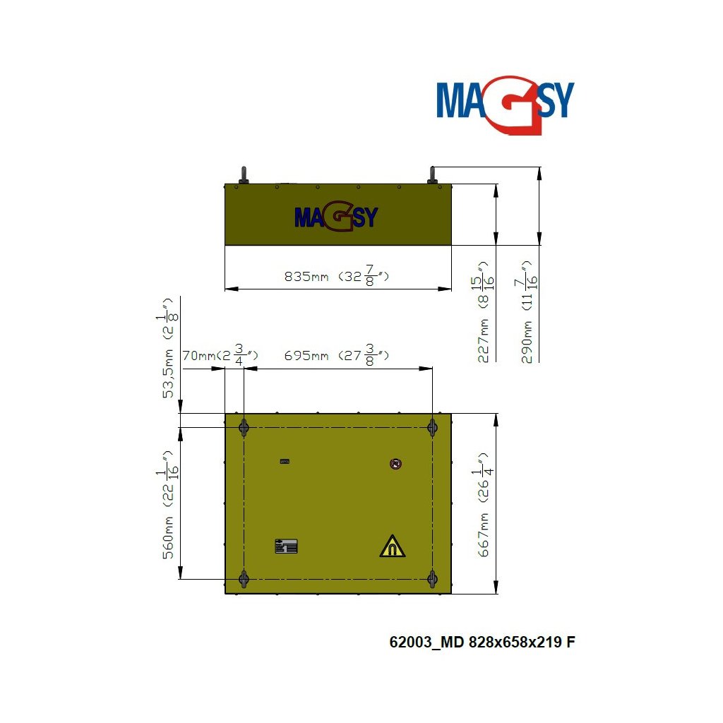 Magnetic plate dimensions are 828x658x219 mm.