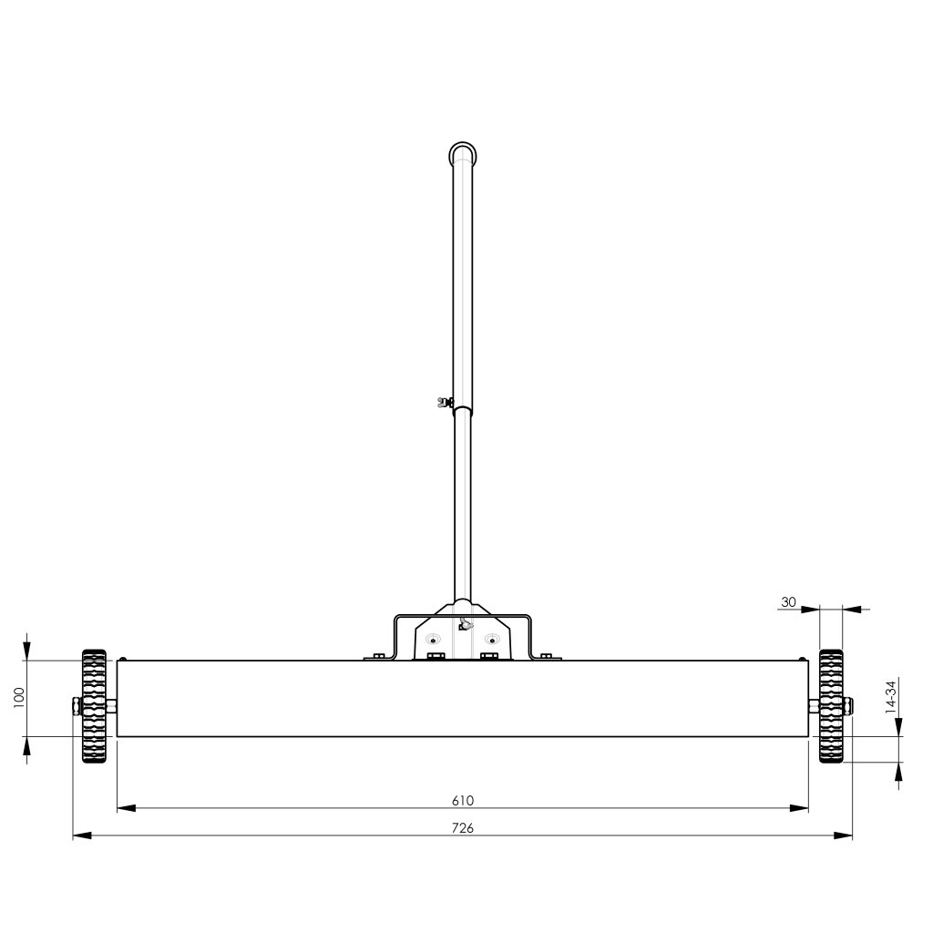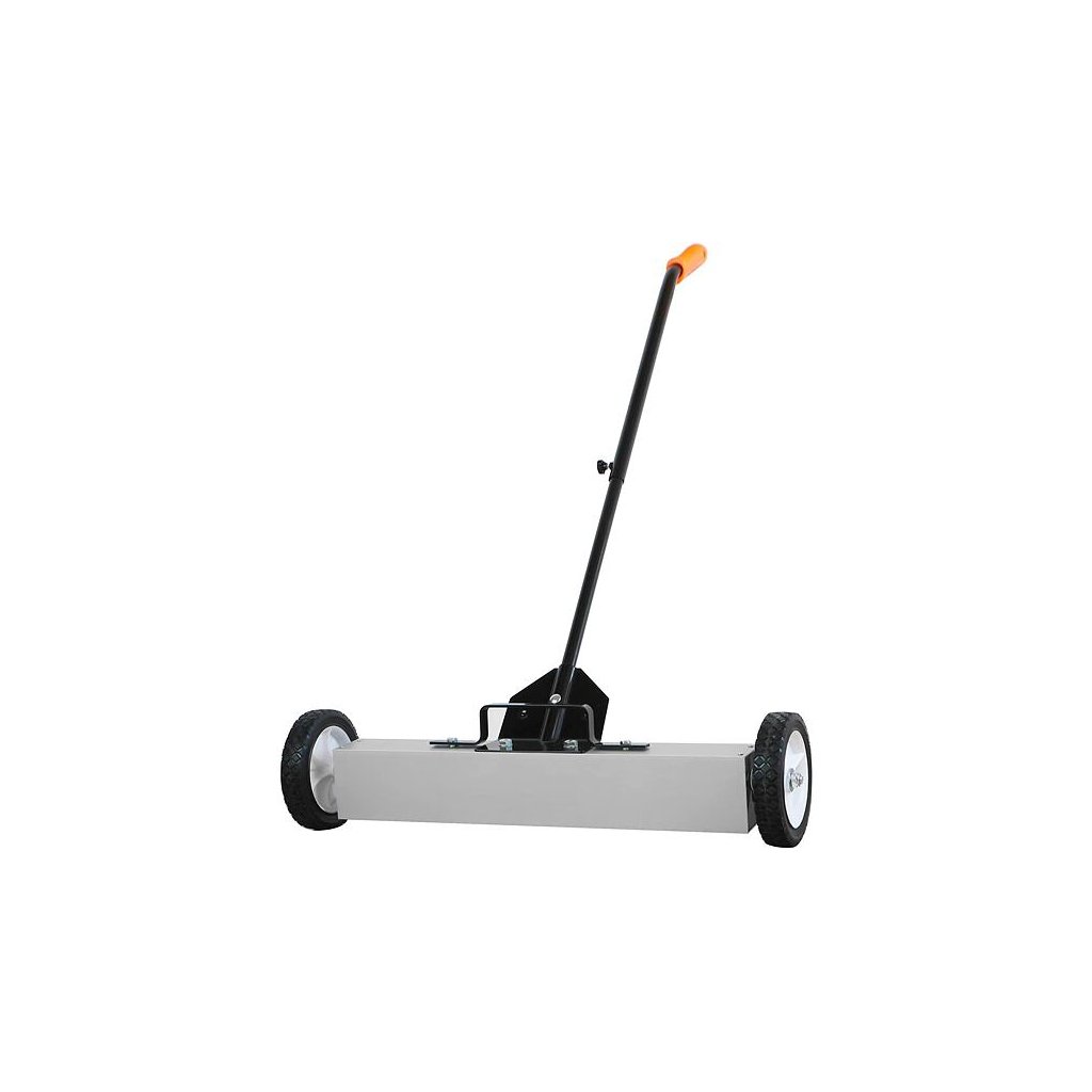 Magnetic broom with a duralumin body and a smooth finish. It is equipped with ferrite magnets that can pick up metal objects – screws, nuts, washers, bolts, steel chips, staples, or paper clips up to a maximum height of 25 mm. The magnetic surface is a sufficient 60 cm long.