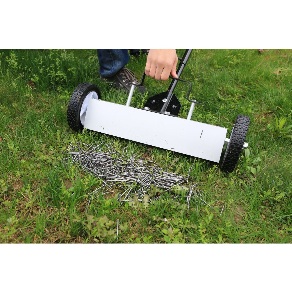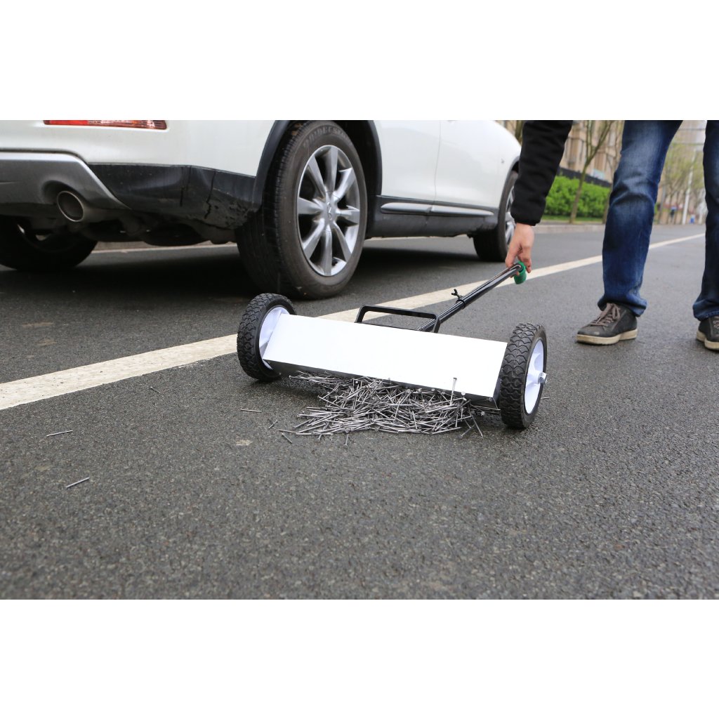 The magnetic broom with ferrite magnets works like a magnetic vacuum cleaner. It can collect various objects, saving you valuable time. The broom is suitable for industrial premises, workshops, garages, and businesses where metal is worked with.