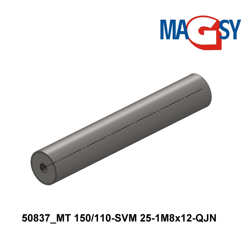 The magnetic bar is primarily designed to create a magnetic grid according to the customer's needs. It has a thread on one side. Using this thread you can screw this rod to any flat steel or to any other auxiliary structure you design. No auxiliary structures or flat steel or brackets or fasteners are included in the delivery of the magnetic bar. Due to the very high magnetic force, please note the necessity to use non-magnetic steel for all materials from which your auxiliary structure or any bracket for attaching the magnetic rods will be made as well as the fasteners must be of non-magnetic design. The minimum distance between the rods when installed on your auxiliary structure, bracket, tape measure must not be less than 20 mm. This is for safety reasons during installation and also to prevent the rods from being pulled by magnetic force. Think also about the properties of the material (bulk and liquid) to maintain the required flow, seepage. If you design the auxiliary magnetic rod holders yourself, we cannot accept any responsibility for the correct function of the magnetic rods. If you are unsure of the installation or assembly to form a magnetic grid, do not purchase a magnetic rod and contact our sales and technical department. Please note the very high intensity of the magnetic force. Take extra care when designing and manufacturing your own assembly to place multiple magnetic bars side by side and especially when screwing (any assembly) into the assembly, separate the individual magnetic bars by a non-magnetic demarcation, e.g. a wooden board. There is an increased risk of injury by connecting the magnetic rods! Keep all magnetic materials, structures, tools such as hammers, pliers, vice grips at a minimum distance of 200 mm from the magnetic bars. Also pay attention to the work table, which must not be iron (ferromagnetic)!