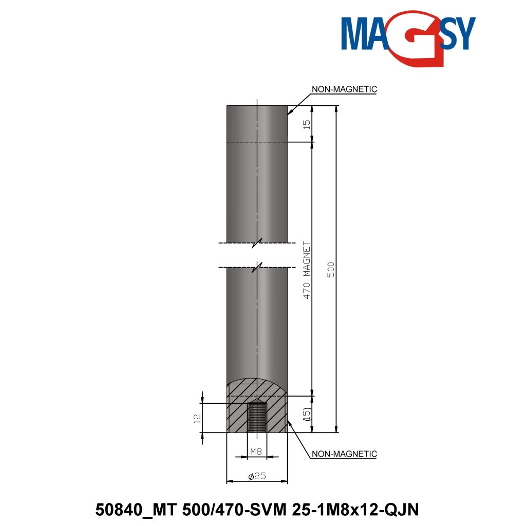 Magnetic rod - NdFeB dia.25 x 500 mm, 14.500 Gs, 95 N, 80 °C