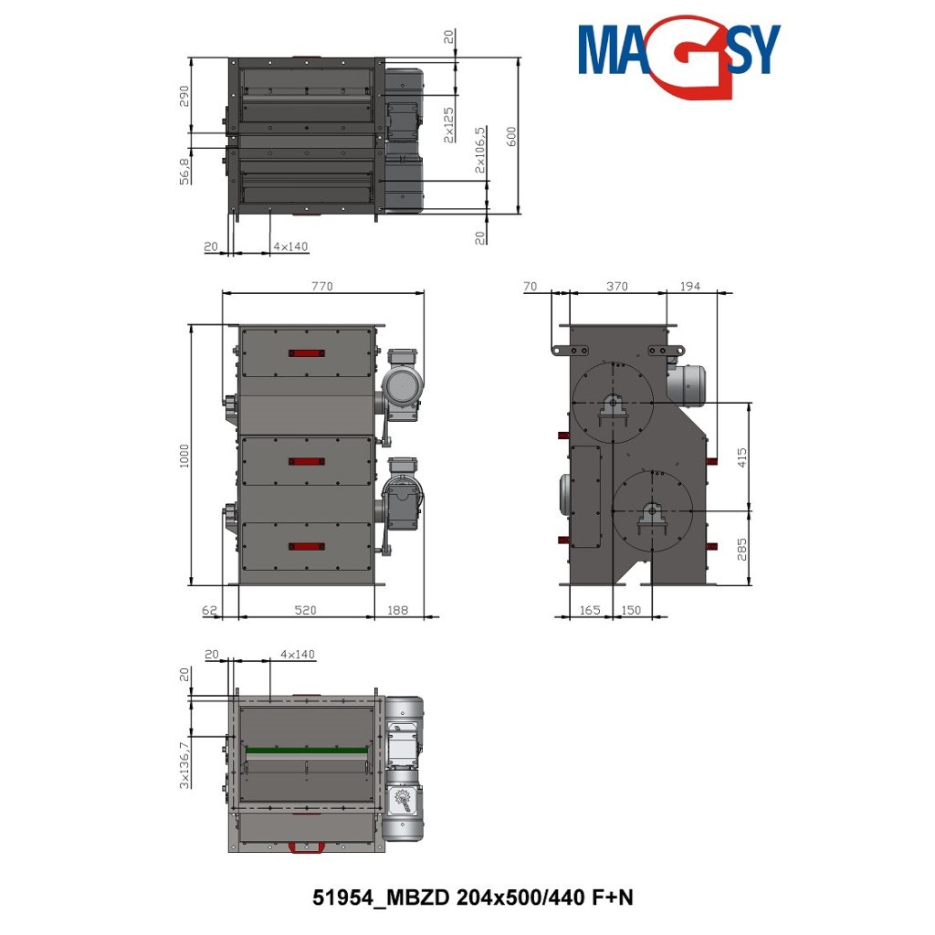 | Engine: | NORD - two-speed (0,37/0,55 kW, 17/34,5 rpm, protection IP 55, 230/400 V, 50 Hz |