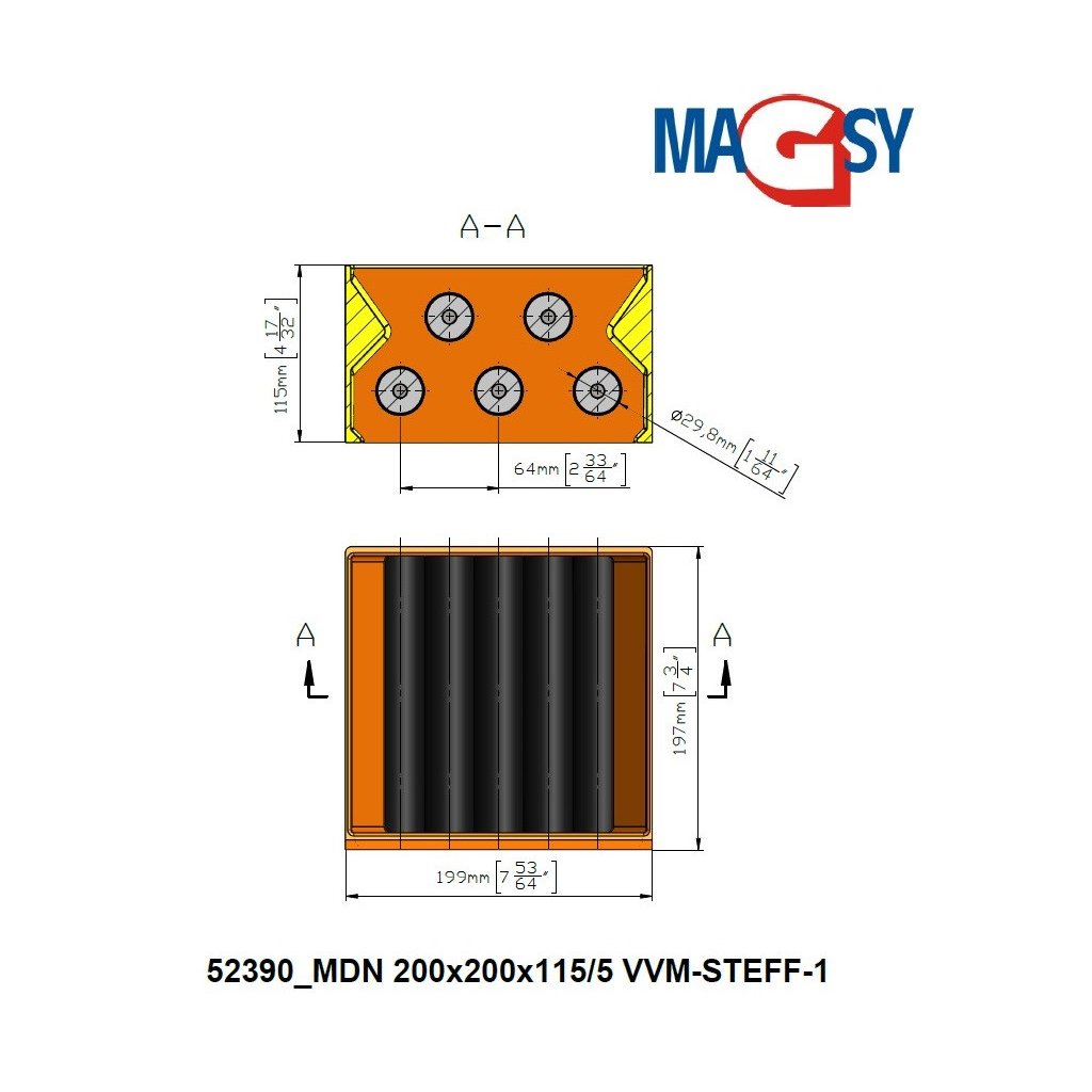 Magnet für den Fülltrichter einer Spritzgussmaschine MDN 200x200x115/5 VVM-STEFF-1