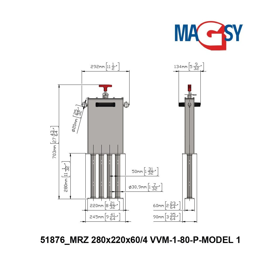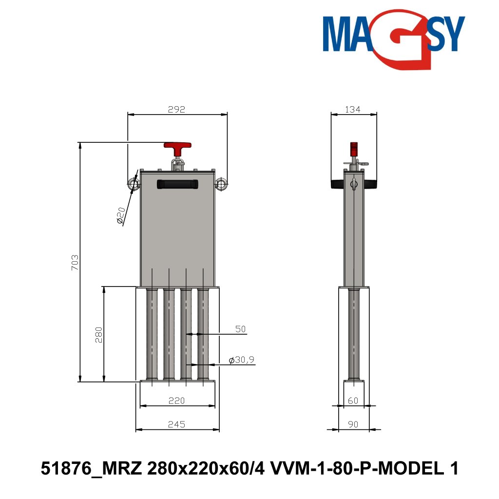 Magnetic grid / finger magnet MRZ 280x220x60/4 VVM-1-80-P-MODEL 1