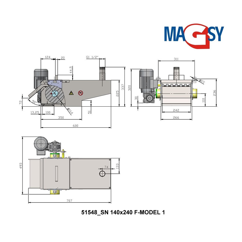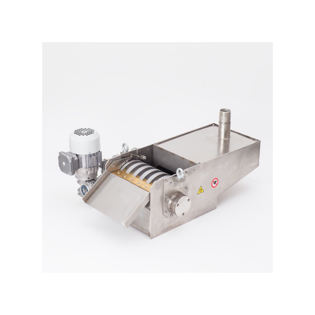 The vessel is equipped with ferrite magnets. Metals are automatically wiped off using a brass wiper. The installation is fully covered because of the work safety reasons.
