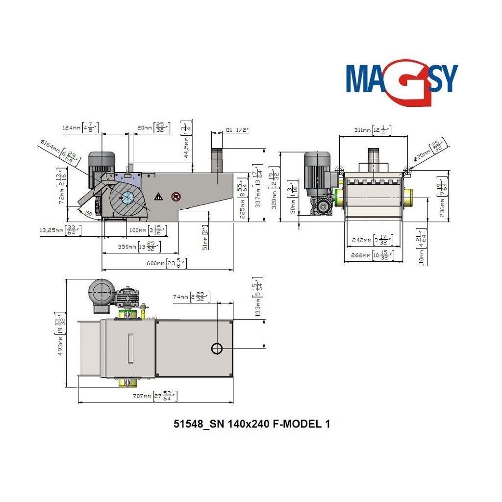 Drive: electromotor with Cantoni gearbox, 0.12 kW, 3 phases, 400 V